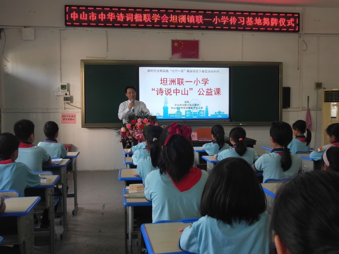 ——中山市中华诗词楹联学会联一小学传习基地揭牌仪式暨《诗说中山》专题讲座举行发布时间:2020-10-23 11:31 信息来源:本网站 浏览次数:0