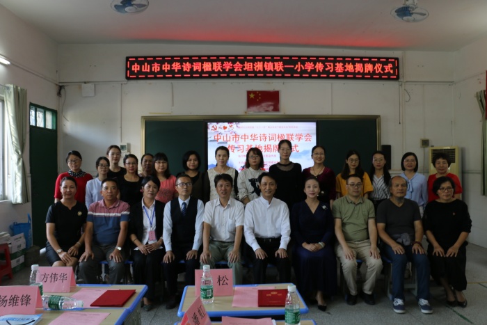 中山市中华诗词楹联学会主席高松先生、坦洲镇文学协会会长方伟华先生、坦洲镇文学协会副会长唐云光先生、郑豪情先生、王宏先生和联一小学全体行政及语文教师参加此次活动。