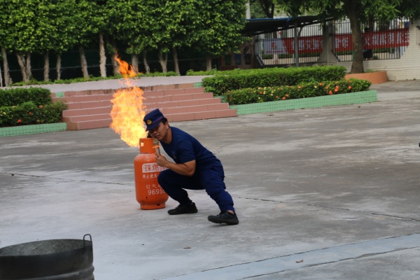 理论结合实践,培训才更有效。随后大家来到操场,卢警官示范如何正确使用灭火器以及煤气罐着火后的处理方法等。紧接着,大家通过实操理解、领悟消防要领,并结合生活实际向卢警官询问一些消防应急处理方法。