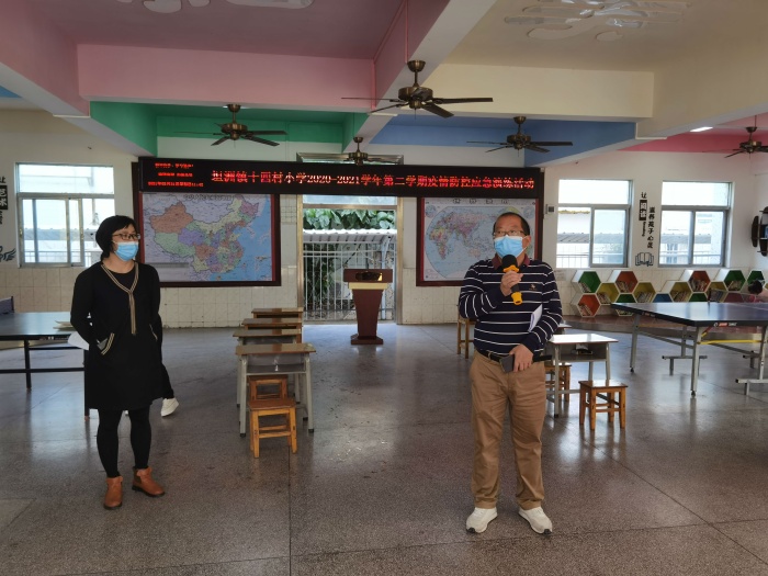 2021年春季开学如约而至。新冠疫情的防控工作依然是开学的重点工作。为全面做好疫情防控工作,进一步提高疫情防范和处置能力,熟练掌握学校疫情防控工作流程。2021年2月22日,坦洲镇十四村小学在校内举行2020-2021学年第二学期返校疫情应急演练——“新冠肺炎防控”重点环节疫情防控演练。演练活动由十四村小学负责卫生工作的李秋婵主席主持会议。演练包含学生上学入校测温和上课学生呕吐的应急处理。