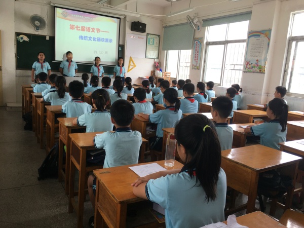 据悉,十四村小学语文节的活动形式多样,包含了三项活动,活动一:“我读书我快乐”评比活动。一、二、三年级美文抄写,四、五年级做手抄报,六年级写读书笔记。评选出的优秀作品在学校大堂展出,供全校学生观摩学习。活动二:集体诵读展示。本次诵读以传统文化为诵读主题,从读的形式、读的方法,老师们都进行了有效的尝试,各班展示活动准备充分,配以优美的音乐,从开场到结尾,浑然一体,把人带入书香的悠远意境,寓教于乐,真正做到让学生“乐读”、“美读”,诵读犹如一道亮丽的风景,为该校师生带来一片生机。活动三:语文基础知识竞赛。竞赛内容以本学期语文课本所学过的基础知识为主,检测学生基础知识的掌握情况。