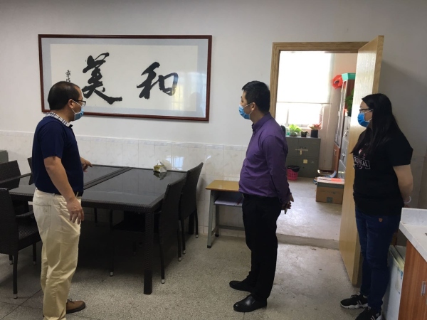2020年4月28日上午,坦洲镇党委副书记杨维旭在十四村村委领导班子的陪同下来到坦洲镇十四村小学进行返校复学复课的前期工作进行调研。十四村小学马林校长陪同调研。