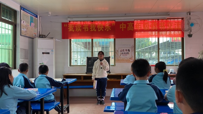 读书交流会上,孩子们踊跃发言,侃侃而谈。活动中间穿插了“古诗大比拼”、“神话故事我知悉”、“歇后语我会接”等趣味活动,活动开展得有声有色,孩子们兴味盎然,在游戏中感悟阅读的力量。中高年级每班三名学生代表根据自己本学期读过的儿童文学读本,以精彩片段朗读、故事内容分享、故事人物评析、讲自己的读书故事等方式畅谈读书的心得。同学们在讲述和聆听中畅游书海,品悟书香,互动畅谈,提高了自身的文化修养。