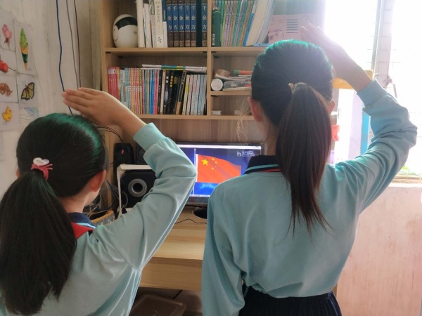 4月13日下午3:20分,坦洲镇永二小学“生命教育”主题班会课按时开始。首先是开展升旗仪式。全校学生按要求穿好校服,少先队员佩戴好红领巾,当国歌响起,同学们都唱着国歌并敬队礼。接着各班主任结合疫情防控期间形成的宝贵教育资源,做好了充分的课前准备,通过ppt、视频播放等形式,从多个方面对学生进行了生命教育,引发学生对生命进行思考,让学生深刻理解生命的价值。这次主题班会课着重孩子心理健康教育与引导,帮助学生消除疫情期间的恐慌心理,让学生学会处理负面情绪,积极面对疫情,做好心理和身体的防护;另一方面,引导孩子正确处理好长时间的线上学习和家长相处方面带来的矛盾。