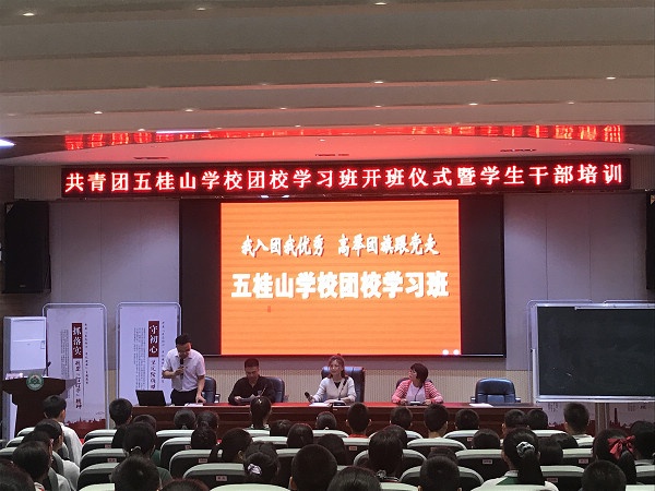 五桂山学校团委每学期都举办一期这样的团校学习班。通过团校学习,加强团员思想意识教育,增强团组织活力,并为共青团输送新鲜血液,增强共青团队伍的力量,更好地为学校、为班级、为同学服务。
