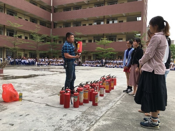 学校还邀请了专业的消防工作人员对全校师生进行了一系列的消防知识教学,包括正确使用灭火器的步骤,逃生知识等。师生们认真观看学习,在消防工作人员的指导下,新进校的老师、各班的班长亲身上场实践,大家都能按步骤正确使用灭火器,扑灭了火源,真是受益良多。