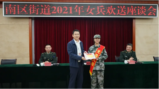 3月22日下午,南区街道为女兵马燕萍举行欢送仪式。这是30年来南区街道送出的第一个女兵,综合素质非常好。南区街道党工委副书记、办事处主任谢军杰,党工委委员、武装部部长王小龙,征兵办和各社区干部,以及家属代表等近50人出席。