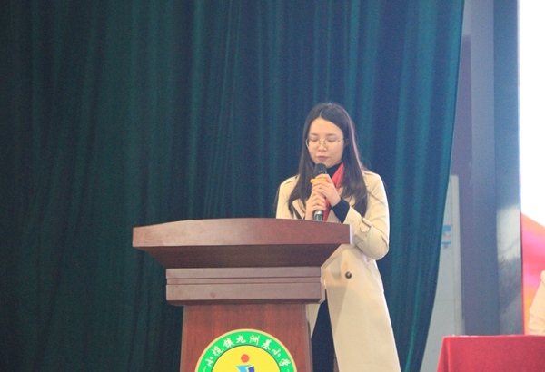 随后镇团委专职团干李倩琳同志致词并宣读了镇团委对九洲基小学2020年少代会召开的批复文件并鼓励队员们争做时代好少年。