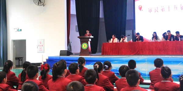 少工委一届二次全委会后,大会闭幕式顺利召开。闭幕式上主持人宣布了学校少工委一届二次全委会的情况,并为学校新一届少先队大队委授彩带、为补选的第一届少工委委员颁发聘书。