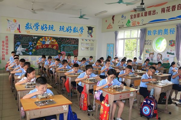 午餐的程序比较繁琐,但同学们在正副班主任老师的带领下,都能有条不紊地做好就餐前的各项准备:错峰洗手、排队、消毒、领餐盘、吃饭,一切井然有序,孩子们享受着美好的午餐时光。在同学们结束午休后,老师们仔细确认每个孩子的体温变化并做好记录,切实做好防控工作。