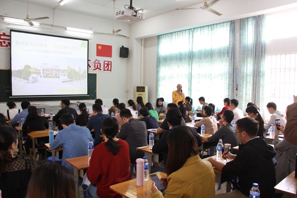 随后,学员们听取了卢发老师作专题为《乘风破浪的青年》班主任工作讲座。卢老师以自己的教育工作为例,从夯实班级德育常规、班干部队伍建设和家校合作等方面阐述班主任工作。讲座内容让与会老师们明晰了班主任的核心工作,更让他们深切地感受到班主任对于教育的真爱。