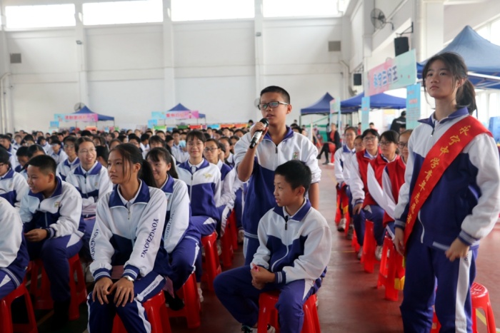 有奖互动游戏融知识性、趣味性和体验性,共设置七个游戏摊位:法制宣传栏、视像宣传、案例介绍、欺凌放大镜、永宁“三分王”、安“图”生、飞跃XY等。在永宁社区志愿者和永宁中学学生志愿者的引导、讲解下,初二级的同学们积极参与,踊跃答题,现场气氛十分热烈。