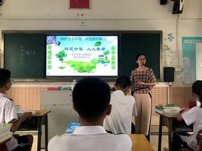 推进垃圾分类工作是创建文明城市重要的一环,美化居住环境,减少污染,变废为宝。为努力推动学校的垃圾分类工作,树立绿色低碳、环保的生活理念,中山市永宁中学师生都非常重视,并且一直在积极推进垃圾分类工作,8月31日下午师生回校的第一天,各班级专门召开“垃圾分类我先行,中山城市更文明”教育主题班会,让垃圾分类真正落实在日常生活中去。