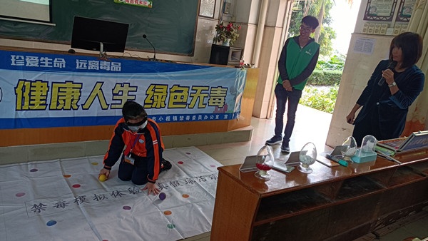 在课程开始前,禁毒社工现场让学生们首先观摩了一系列的仿真毒品,并且逐一进行了介绍,让学生们都对毒品有一个初步的了解和认识。随后,德育主任谢平老师在课堂上利用多媒体设备,以图文并茂的方式详细讲解了毒品的种类和形状,它对人体的危害和毒品等相关知识,以及吸食毒品对个人、家庭以及社会造成的严重危害。为了加深学生们的认识,课上还穿插了模拟吸毒的体验环节,充分让学生们感受到毒品对健康的危害。