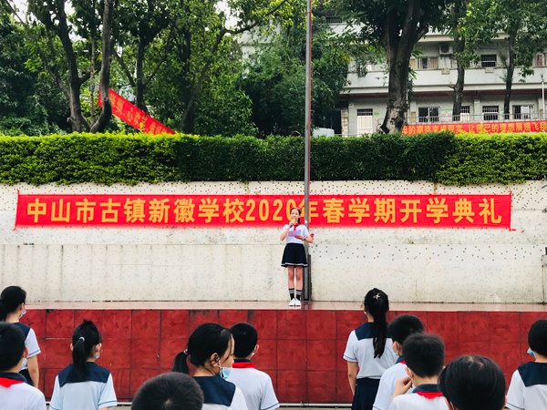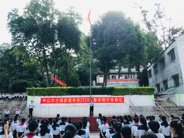 在度过了2020年特殊的“寒假”之后,全校师生已平安顺利返校复学,6月5日上午8时,古镇新徽学校全体师生一千余人间隔1米齐聚操场,举行了2020年春学期开学典礼。