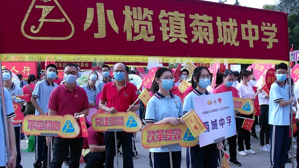 3月20日上午,小榄镇2021年慈善万人行在小榄镇体育馆精彩开幕。今年慈善万人行的主题是“小榄大爱,慈善菊城”。菊中一直秉承“博爱、励志、正行、务实”的校训,展现学校奉献的风采,弘扬菊中博爱精神。由于疫情防控原因,今年,学校共有师生50多人参与本次盛事。