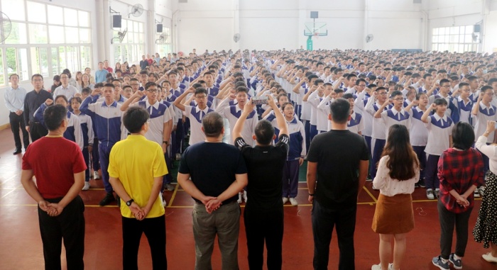 此时此刻,队列前面的老师们为学生挥手鼓劲,队列后面的师弟师妹为学长们呐喊助威。那掷地有声的誓言,那铿锵有力的呐喊,在体育馆上空久久回荡,历久不散。不但彰显着他们的愈战愈勇的豪情壮志,也昭示着今年中考,永中再创辉煌!向中国共产党建党100周年献礼!