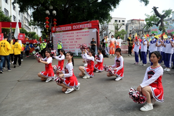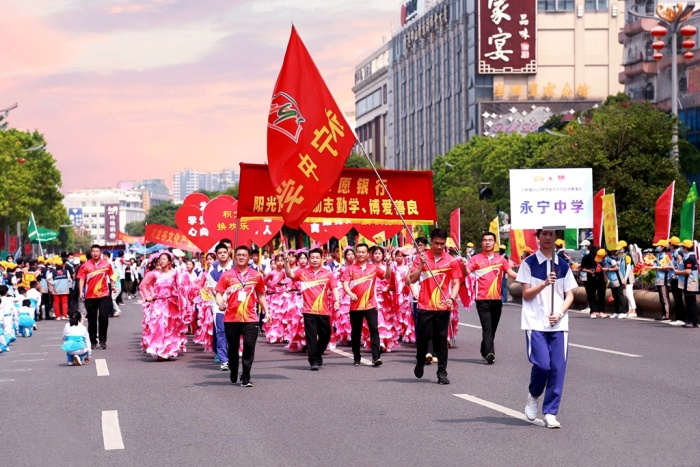 永宁中学党支部为积极响应慈善活动的倡议,展现永中师生“阳光自信、励志勤学、博爱善良”的精气神,在做好疫情防控的前提下,分别组织了永宁中学“红心向党”盛世花伞巡游队、“红心向党”啦啦队和“同心向党,志愿同行”公益嘉年华永中志愿银行摊位展示队,参加本次万人行活动。