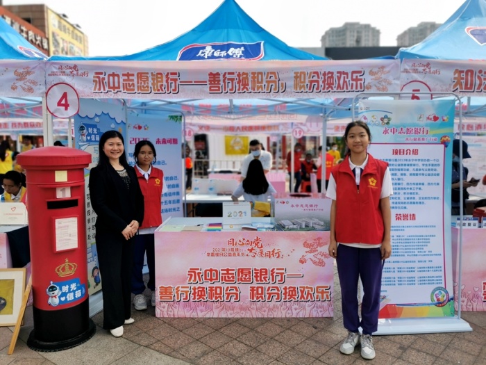 同时,在小榄118广场 “同心向党,志愿同行”----2021年小榄镇学雷锋月公益嘉年华中,永中志愿银行展示摊位门前热闹温情,18名永中学生志愿者和节目表演同学更是心情澎湃,热情高潮,他们忙碌中收获温暖,传递慈善爱心,传递志愿文化正能量。永宁中学志愿服务队荣获2019年中山市学雷锋志愿服务先进典型“最佳志愿服务组织”。