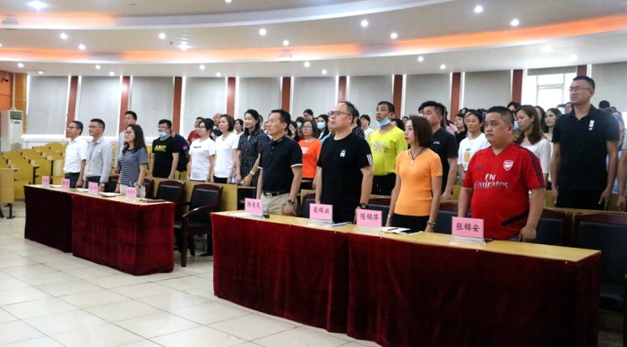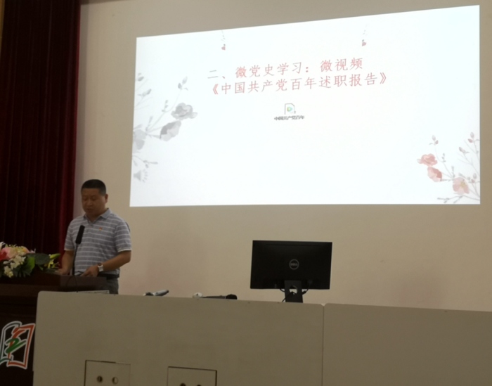 会议在慷慨激昂的国歌声中拉开序幕。首先,全体人员一起观看了微视频《中国共产党百年述职报告》,进行了党史学习。
