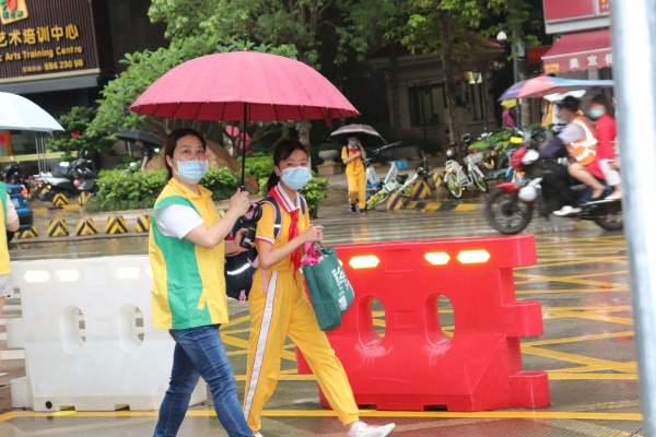 该校从以下“细节”支起暖心通道。细节一:早上7:00,校门口支起了一条暖心通道,晨检准备工作已经部署完毕,天气预报今日有雨,学校未雨绸缪、细致安排,早早便搭好宽大的雨蓬、备好充足的雨伞雨衣。细节二:拉起引路的红线,处处可见的路标、路牌,以及值日老师们亲切的问候和指引,让回归的学子们消退迷茫,快速熟悉起昔日校园,为孩子们安全复学、有序复课保驾护航。细节三:初夏雨瀑忽倾,每一位迎接的中心小教师,立即拿起备好的雨伞冲进雨中,给孩子们撑起了一片晴空。狂风暴雨中大大的伞面微微倾斜,老师们淋湿了半边身子,却扶着身旁好久不见的孩子们,欣然微笑,“你若安好便是晴天”。