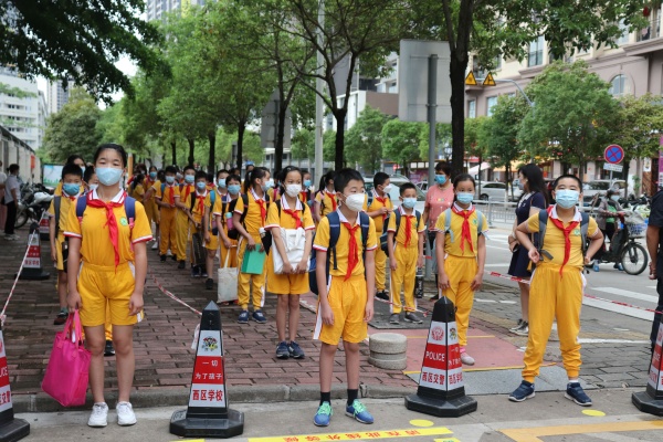 该校当天早上用实际“笑脸”迎接学子返校。“你笑起来真好看”:“你笑起来真好看,像春天的花儿一样”,一大早,西区中心小学的校园里传来了美妙的歌声。近千名学子踩着欢快的韵律归来。轻松愉快的氛围让孩子们返校的心情愈发迫切。学校电子屏幕滚动播放:欢迎孩子们回校,你笑起来真好看!数百名教师胸戴笑脸徽章,迎接学子归来。