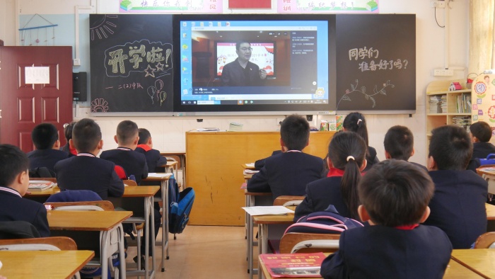 为了配合疫情防控工作,烟洲小学的开学典礼采取线上直播的形式。学校领导和老师们化身为主播,对全校师生表达了真挚的祝福,寄予了殷切的希望。首先,由黄文华校长发言。黄校长指出,一年之计在于春,新学年从做一个文明的孩子开始,制定好新的学习计划;同时发扬自身特长,提高音乐、体育、美术等艺术素养。黄校长希望同学们珍惜自己的时间与汗水,全力绽放美好的花季。