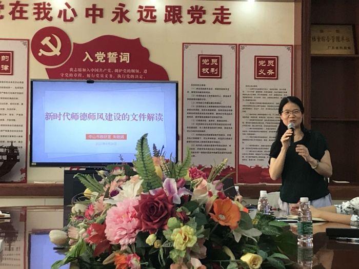 为全面提升烟洲小学教师队伍素质,认真落实广东省教育厅文件精神,切实加强和改善烟洲小学师德师风建设工作,10月20日下午,烟洲小学邀请了中山市教研室朱敏嫣老师到校开展主题培训。