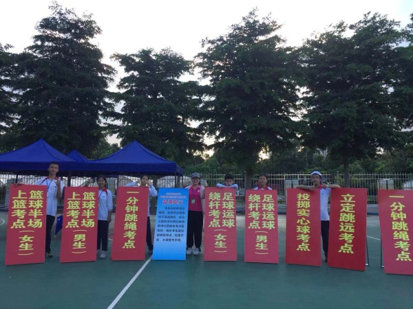 各个岗位上的志愿者坚持服务好学长、学姐们体育考试的宗旨,分工明确,互相协助,从引导考生到各考点,到出口处的成绩登记,再或是维持考场秩序,协助配合裁判员解决考试中的各类问题等,每一个人都精神饱满,顶着烈日为考生引路、加油鼓劲、耐心陪伴考生,直到下午六时,所有考生完成考试项目。