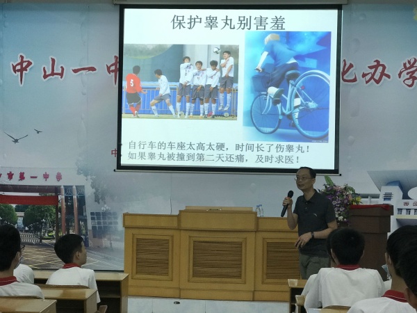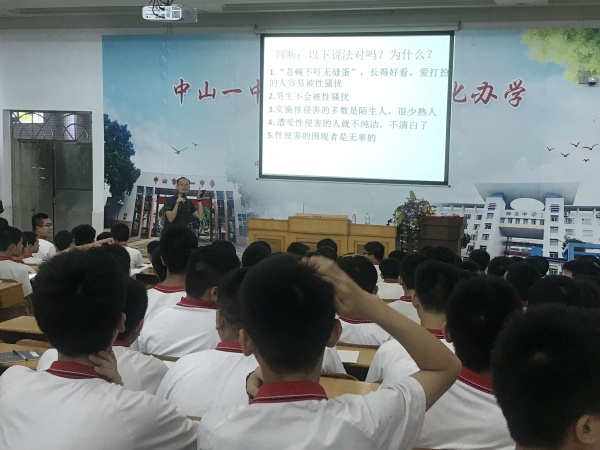 6月2日下午,中山一中西区中学在阶梯室举办了“拥抱青春,防范性侵——初二级青春期性教育”讲座,本次活动由莫秀红副校长主持,中山一中青春期性教育课题组赖浩老师主讲,初二年级全体男生、全体班主任、生物科组参加本次活动。