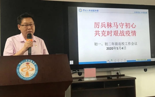 五月繁花迎风长,青春逐梦返校来。按照广东省复学工作安排,5月4日青年节,中山一中西区中学2019学年第二学期第二批返校工作部署会议按计划进行。初一、初二年级全体老师参会接受相关培训,会后分成若干小组到所有课室去进行环境打扫和文化布置,为迎接第二批返校的初一、初二年级学生做好一切准备。