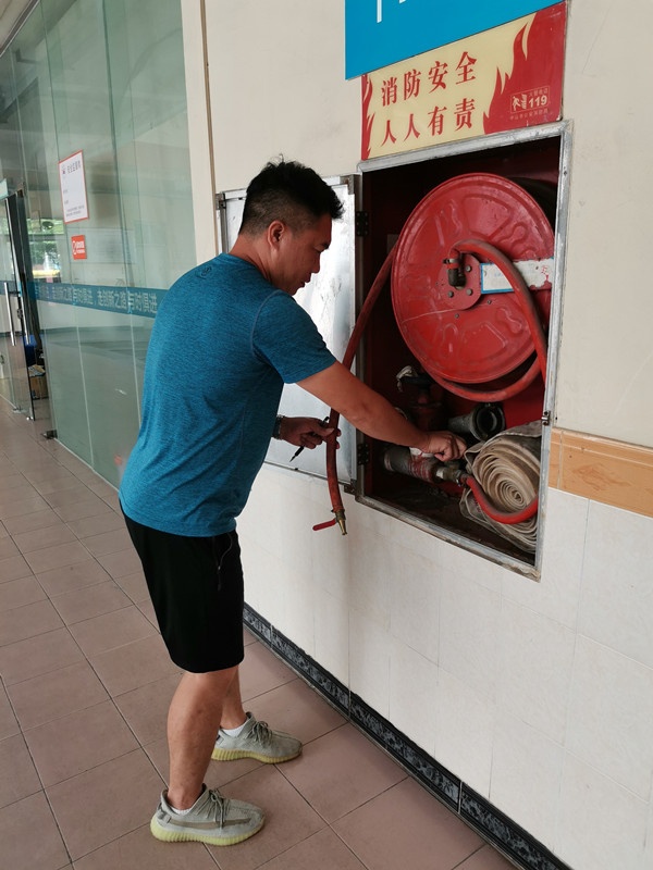 6月12日上午,在检查消防设施时,林主任强调:分工合作,检查工作要细致,发现问题及时解决或上报。具体分工是:林主任负责检查一楼及饭堂的消防设施,林钟坤老师负责检查教学楼二楼,罗宇老师负责检查三楼,潘尚真老师负责检查四楼。检查情况如实汇报给林主任。林主任针对存在的问题马上作出整改,如消防箱里的灭火器不够,林主任和老师们从库房取出补充到相应的消防箱里。罗老师在检查中发现个别消防栓的水阀有生锈和被腐蚀的现象,林主任知道后便通知专业人员进行维修。与此同时,潘老师和林老师反映个别消防栓出水慢和小的问题,林主任也全部列出清单进行整改,大部分问题当天已完成整改。