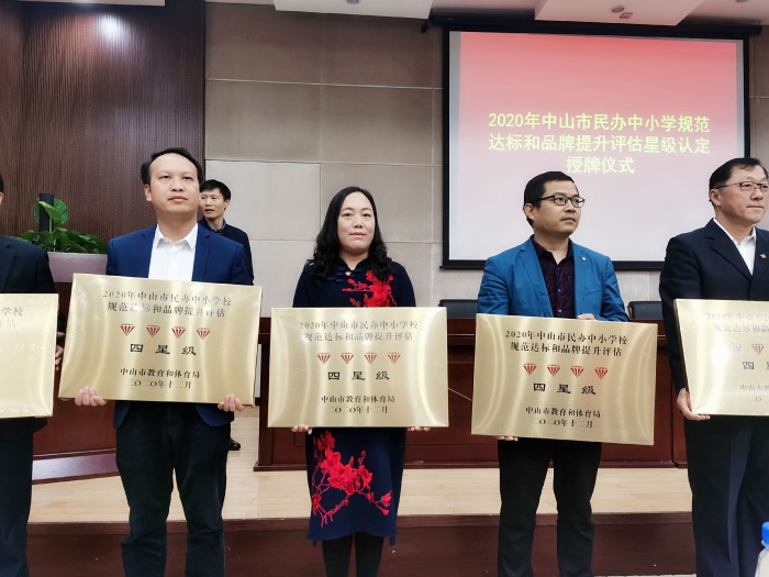 3月5日上午,中山市教育和体育局举行2020年中山市民办中小学规范达标与品牌提升评估星级认定授牌仪式,为中山市部分优质民办学校授牌。中山市教育和体育局副局长黎国喜、中山市教育和体育局副局长陈威为获评星级学校颁发了牌匾,各镇街教育主管部门负责人及民办学校校长参加了授牌仪式。