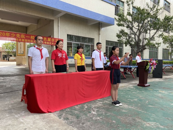 2020年6月29日上午8点15分,聚星学校大队部开展少先队“传承爱国传统文化 人人争做武术小健将”一校一特色社团展示活动,聚星学校党支部书记兼少工委主任路海云女士、党支部副书记龙诗云女士、小学教务处张世铖主任和聚星学校少先队大队辅导员谭治伟老师一同参加了本次活动。