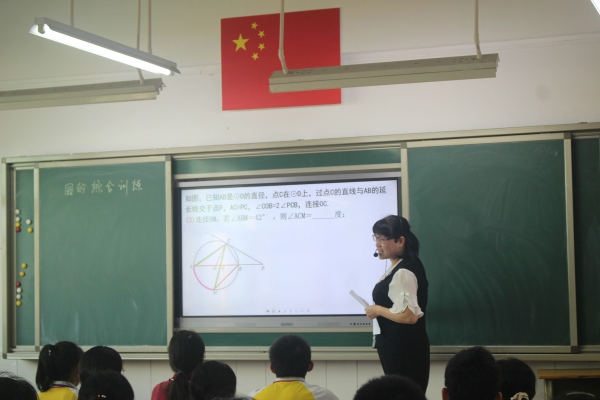 活动分两个环节:一是由聚星学校郑慧敏老师与曹赛英老师以同课异构的形式执教初三数学研讨课《圆的综合复习》;二是由中山市教育教学研究室周曙副主任、西区教育事务指导中心梁亮亮教研员对上课老师的课堂教学点评和数学中考备考方向讲座。