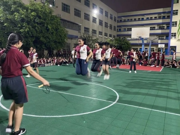5月27日晚,聚星初一初二年级团队运动会在学校后操场火热进行。赛场上,运动员们龙腾虎跃,奋力争先,展示了良好的精神风貌:参加跳绳比赛的运动员们,则用矫健的身影、默契的团队配合彰显着他们的活力。赛场外,没有比赛任务的同学们组成了班级"啦啦队",加油声此起彼伏,给赛场增添了紧张激烈的气氛。