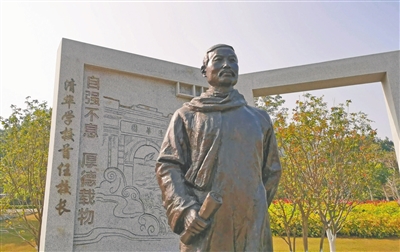 在唐国安纪念馆内,汉白玉唐国安半身雕像背靠一幅石刻清华园大门浮雕,循着楼梯上到二楼,从早年的西风东渐到今日的清华风采,以300余件展板和文物,直观全面地展现唐国安的一生,也形象生动地再现了从清末到民国初期中国教育事业的跌宕起伏、清华初创时期的风云岁月。