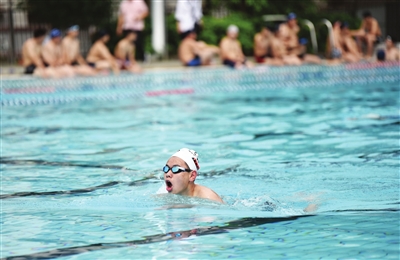 紫马岭室外游泳池,参加游泳考试的学生在此训练。本报记者 文波 摄