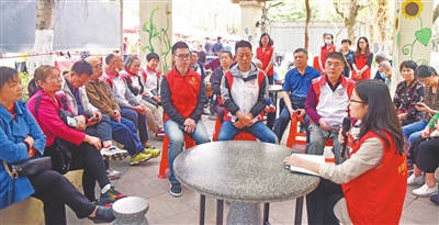 城南社区党委书记李嘉清开展党史学习教育微宣讲。本报记者 文波 摄