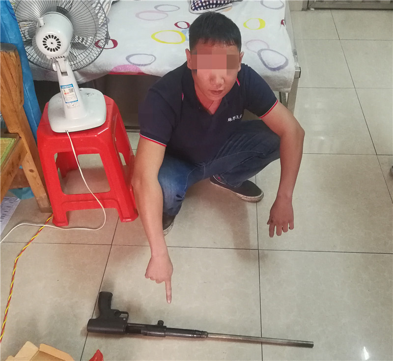 追查案件过程中,警方再次掌握另一条线索,东凤镇一名外号叫“林五”的男子有非法买卖枪支弹药的重大嫌疑。经研判分析,3月11日10时,警方突袭了东凤镇玉峰路一办公室,32岁广西男子林某波落网,警方打开林某住处时吃惊不小,里面藏有一条一米多长的枪支,弹药77发,另有枪支配件一批。经鉴定,缴获的自制枪支为火药枪。林某波在审讯中交代了其在某平台购买枪管,并对枪支和子弹进行非法改装的经过。