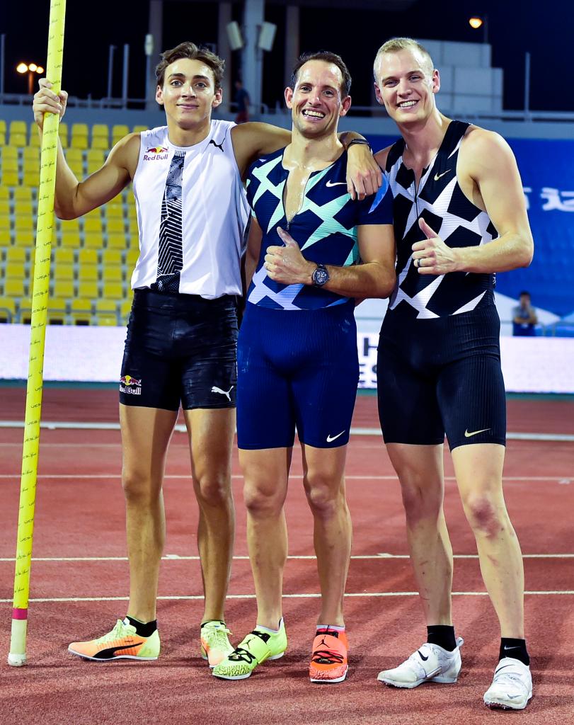 资料图:2020年9月25日,美国选手肯德里克斯(右)在2020世界田联钻石联赛多哈站男子撑杆跳高比赛中获得亚军。新华社发(尼库摄)