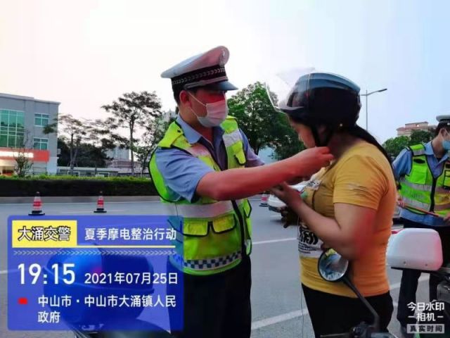 根据辖区摩托车、电动自行车出行规律,7月24日晚,大涌交警继续采取定点执勤和动态巡查相结合的形式,在辖区德政路、旗山路、华泰路等路段设点执勤,严查驾驶摩托车、电动自行车不按规定佩戴安全头盔、酒驾醉驾、无证驾驶、超员、故意遮挡号牌、逆向行驶、违反信号灯、违法载人、非机动车不按车道行驶等交通违法行为。