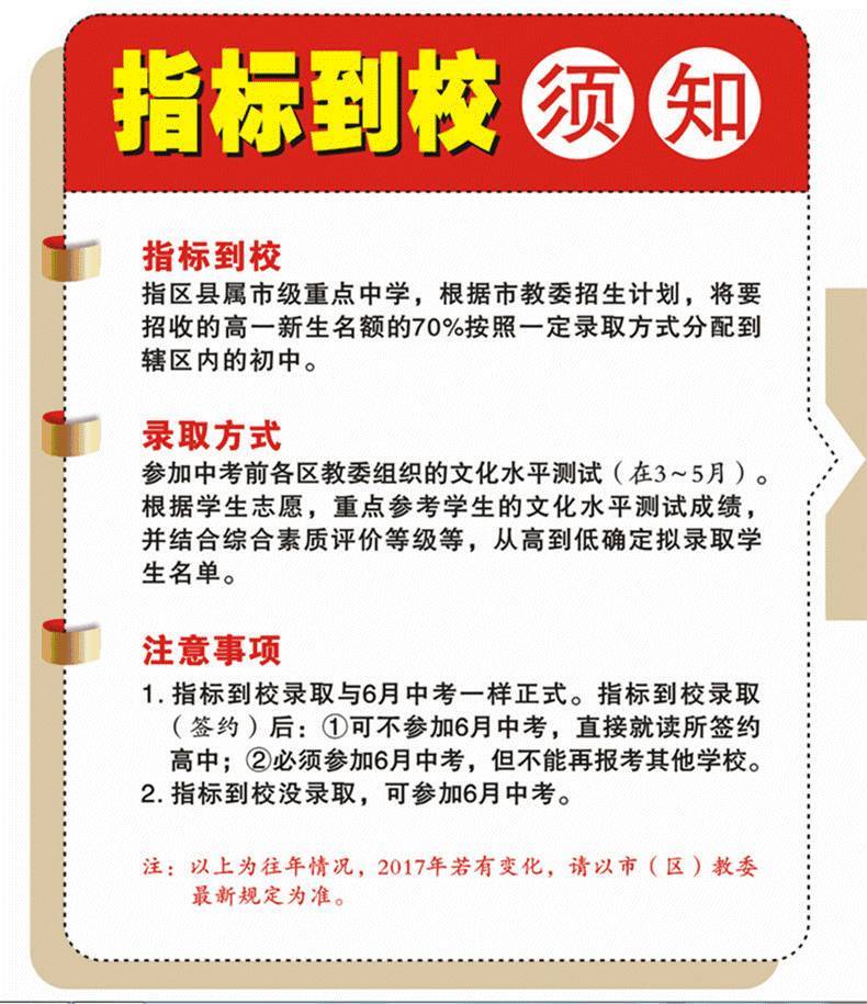 除此之外,还有一个实现教育资源合理分配的“新政策”――指标到校。这个名称很多人一定并不陌生,因为有很多城市早在很长时间以前就开始实施了。但终归是小范围,不能惠及到所有的初中生。
