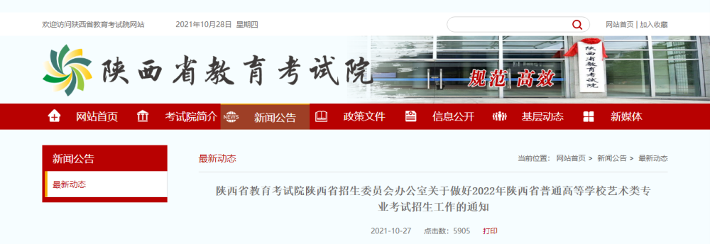 陕西省2022年艺术类专业考试招生工作的通知 截图