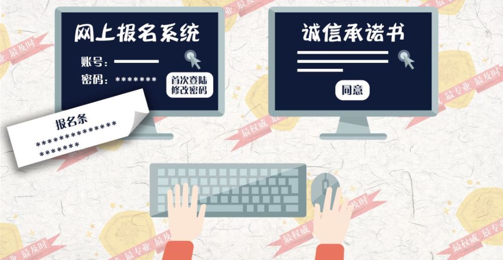 凭报名条进入网上报名系统。初次登录时,要修改密码,阅读诚信承诺书并点击“同意”。