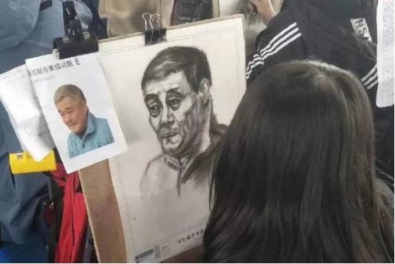 第三位考生在考试过程中没有发呆,但他画画速度太慢,一直到要交卷时,也只画完了半张脸。单看着半张脸,就能看出这位考生功底确实不错。