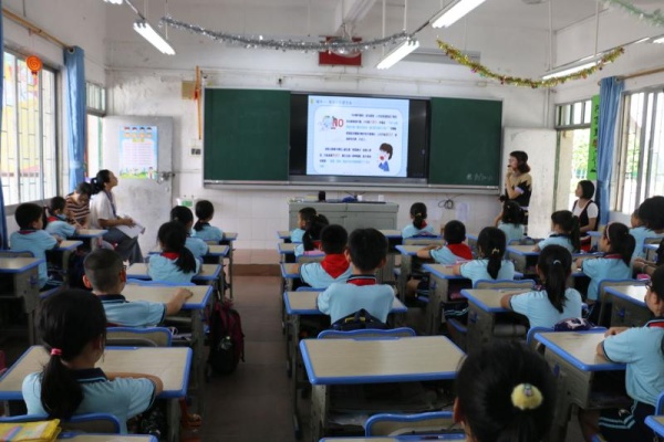 陈泽玲和梁土瑜老师设计的班会课生动、有趣,两位老师都利用游戏体验方式让孩子们了解到自己的情绪变化的多样和复杂。让孩子们知道,如果有了坏情绪后,要懂得选择正确调节情绪的方法;吴伟玲老师开展的“珍爱生命,守护生命”为主题的班会课,利用生动的事例阐明简单的道理,深入浅出,别开生面;姚燕老师的班会课以“学会交往”为主题,以小视频导入,同学们展开热烈的讨论,课堂上轻松活跃,大家各抒己见,发表不同的看法。曾大妹、许妙旋老师课前准备充分,课型新颖,师生互动效果好,老师们向同学们展示了一节节生动而又富有教育意义的班会课,触动着每一个孩子的心灵。