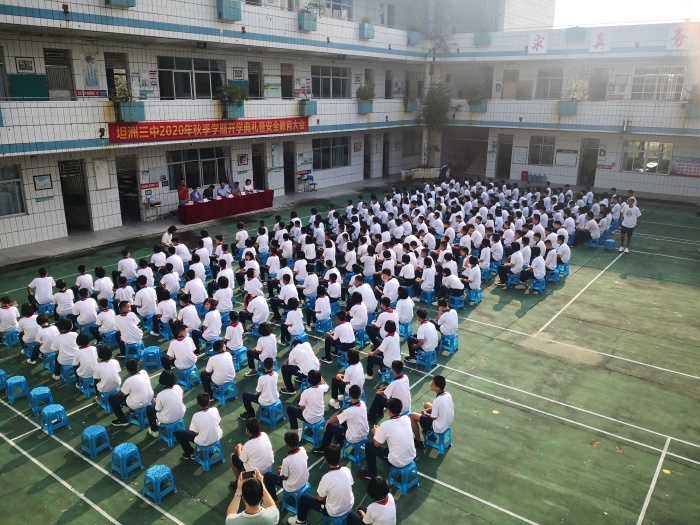 沐浴晨光,秋风微拂,沉寂已久的校园,又恢复了以往的活力与生机。2020年9月1日上午,坦洲三中2020年秋季学期开学典礼如期举行。典礼由校德育副主任彭峰老师主持,学校全体老师和学生参加了典礼。