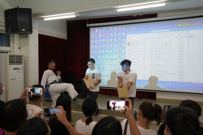 艺体处美貌与智慧并存的杨帆主任也不甘示弱,给一年级家长们介绍了艺体处的校本课程。当英姿飒爽的跆拳道老师上场展示绝活儿时,现场家长们纷纷掏出手机,拍照、录相、鼓掌、喝彩声连绵不绝,经久不息。