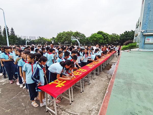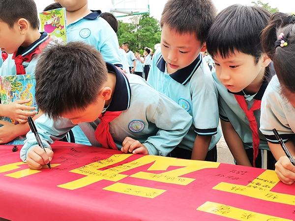 接着,愿意接受本次“21天健康阅读行动”挑战的学生上台签名,在鲜红的挑战书上写下自己的名字,正式开启阅读挑战。最后,同学们积极踊跃地拿出自己珍藏的书籍,参加学校的漂书活动,彼此分享阅读的快乐。知识因传播而美丽!图书漂流是一种赠予,一种分享。图书漂流,漂流的不仅是知识和智慧,更是漂流了文明和美丽,一种爱读书、珍惜书的好习惯已在永一小学悄悄形成。